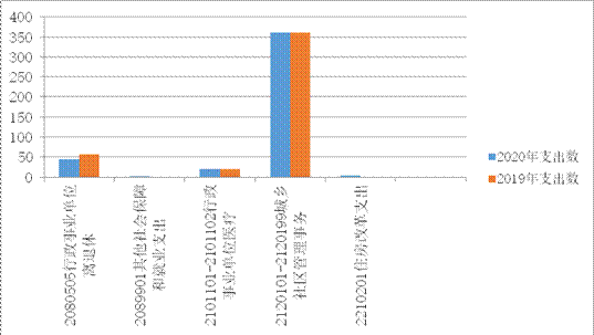 (4)城乡社区管理事务(2120101—2120199)361.18万元,其中人员经费305.58万元,公用经费支出9.6万元,专项业务经费支出46万元。较上年增加0.74万元,原因是人员工资普调增加。
