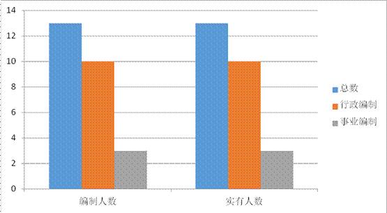 截止2019年底,本部门人员编制13人,其中行政编制10人、事业编制3人;实有人员13人,其中行政10人、事业3人。