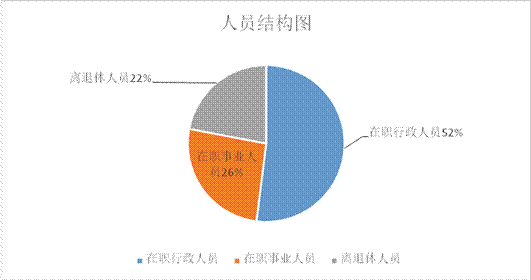 截止2019年底,本部门人员编制40人,其中行政编制25人、事业编制15人;实有人员39人,其中行政26人、事业13人,单位管理的离退休人员11人。