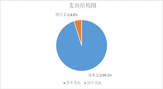 2019年本年支出合计4460.64万元。其中:基本支出4245.24万元,是为保障机构正常运转、完成日常工作任务而发生的各项支出,包括人员经费和公用经费,占总支出的95.2%;项目支出215.4万元,是为完成特定的工作任务或事业发展目标,在基本预算支出之外,财政预算专款安排的支出。主要包括办公设备购置支出24万元、基础设施建设支出28.47万元、其他项目支出162.93万元,占总支出的4.8%。