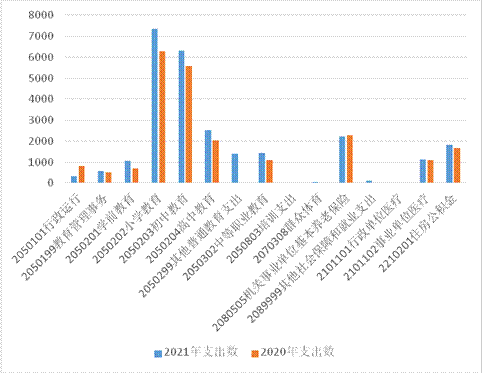 (7)其他普通教育支出(2050299)1404.5万元,较上年增加1404.5万元,原因是将中小学公用经费、困难学生生活费补助、营养改善计划、乡村教师生活补助、安保工资、乡村教师生活补助纳入本科目。