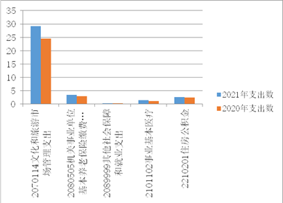 (1)文化和旅游市场管理(2070114)支出29.25万元,较上年增加4.75万元,原因是工资普调后人员经费的增涨。