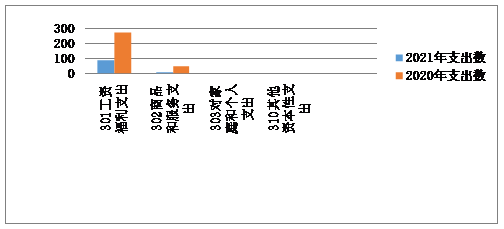 工资福利支出(301)86.88万元,较上年减少188.85万元,原因是原新型合作医疗经办中心并入医疗保险经办中心。