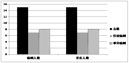 截止2018年底,本部门人员编制15人,其中行政编制7人、事业编制8人;实有人员15人,其中行政7人、事业8人,离退休人员5人。