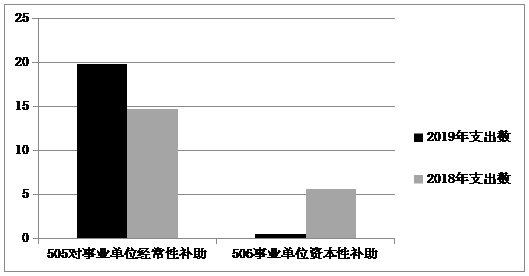 对事业单位经常性补助(505)19.8万元,较上年增加5.1万元,原因是2019年扶贫工作增加了办公费和差费。