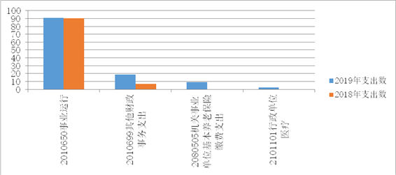 (4)行政单位医疗(2101101)支出2.32万元,同比增加2.32万元,原因是2018年没有预算到单位。