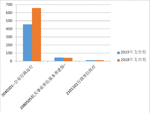 (1)行政运行(2040201)456.41万元,较上年减少202.76万元,原因是2019年一般公共预算功能科目支出明细化,科目增加。