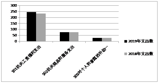 2019年本部门一般公共预算拨款支出349.33万元,较上年增加10.73万元,主要原因是工资调资和养老保险进入预算带来的增长。