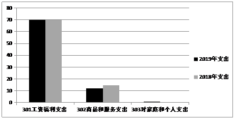 工资福利支出(301)69.97万元,较上年增加0.03万元,主要原因是:人员减少1人,同时艰苦地区津贴调整和工资普调;