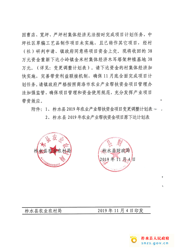 调整2019年农业产业帮扶资金项目计划的通知