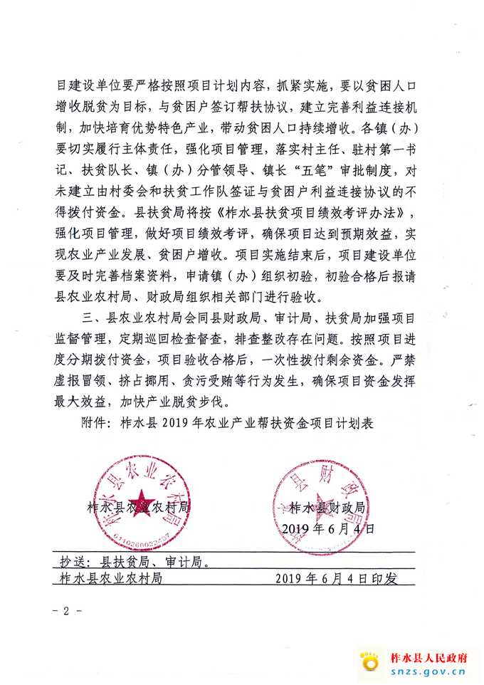 关于下达2019年农业产业帮扶资金项目计划的通知