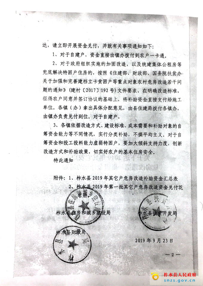 关于下达2019年其他农户危房改造第一批资金计划的通知