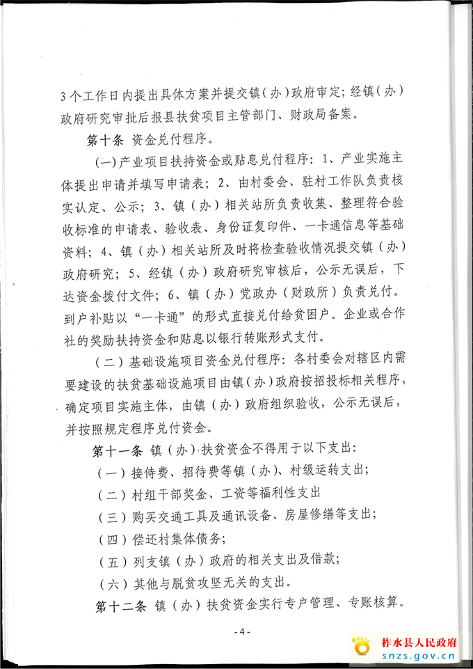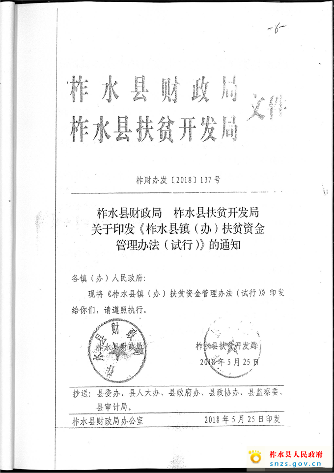 关于印发《柞水县镇(办)扶贫资金管理办法(试行)的通知