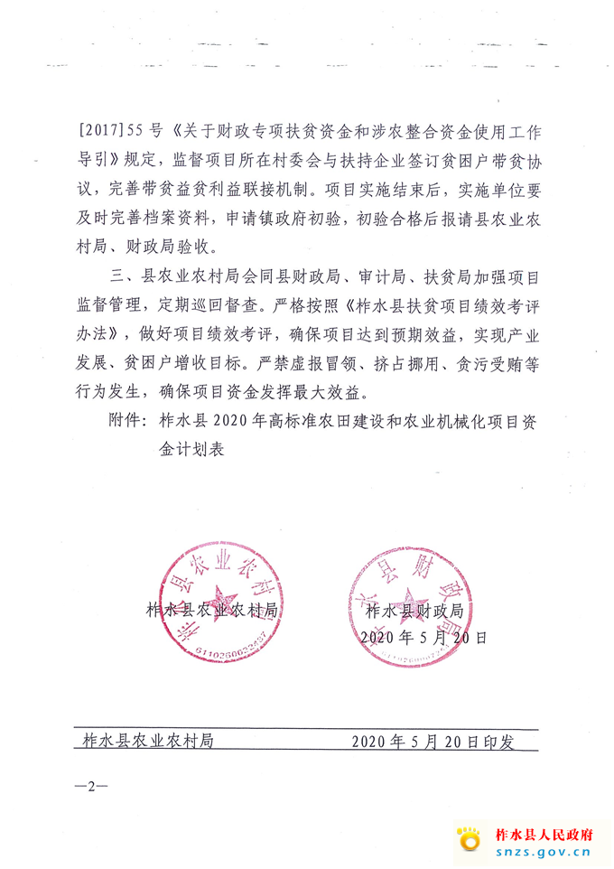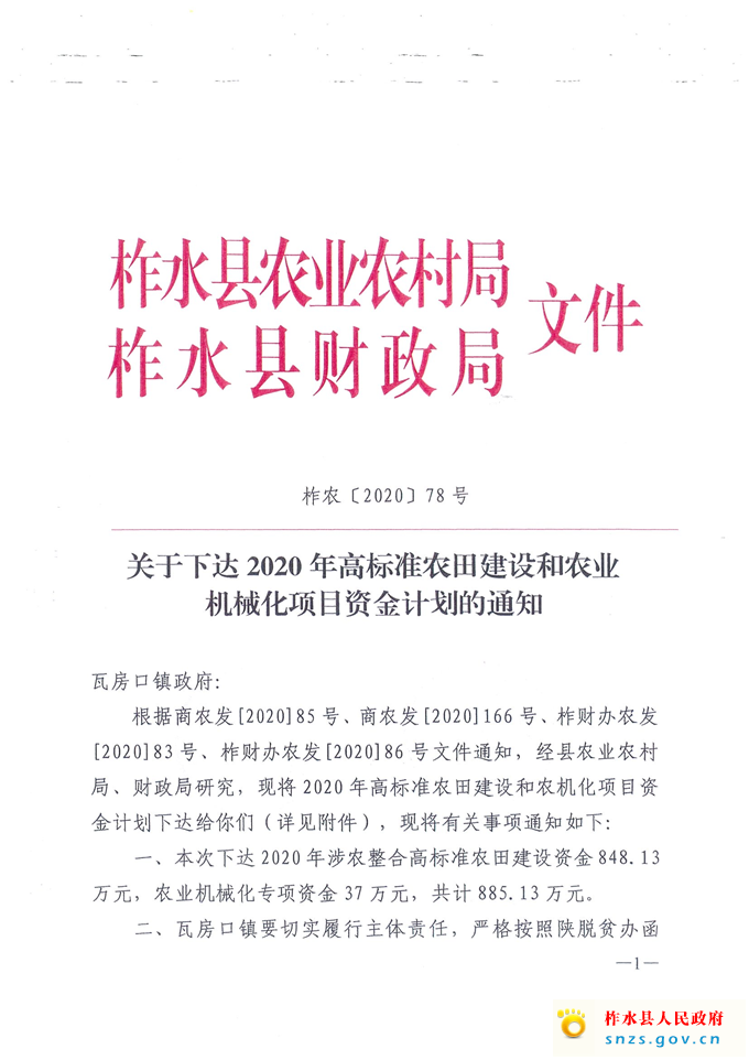于下达2020年高标准农田建设和农业机械化项目资金计划的通知