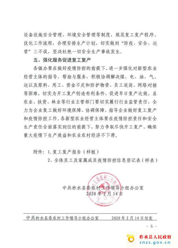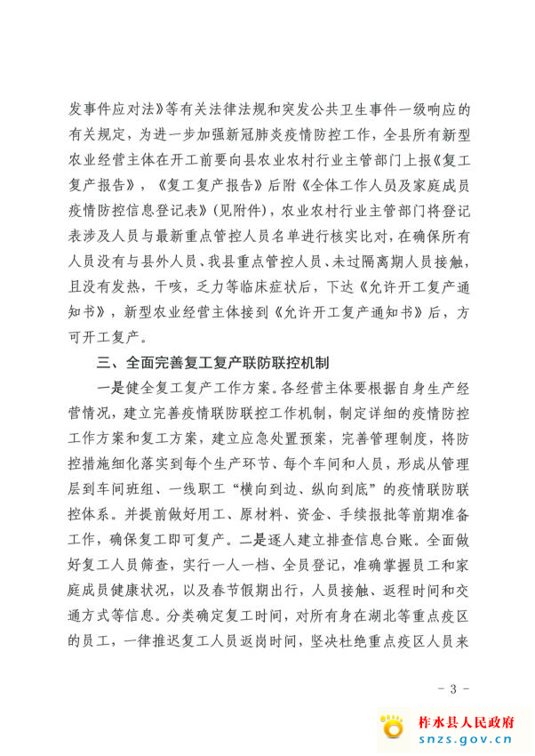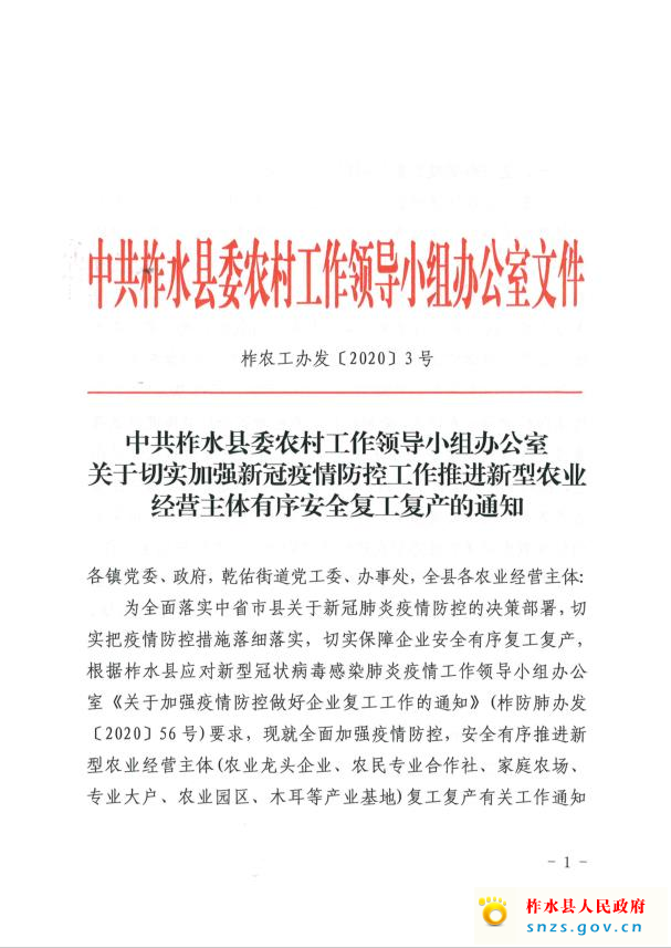 关于切实加强新冠疫情防控工作推进新型农业经营主体有序安全复工复产的通知