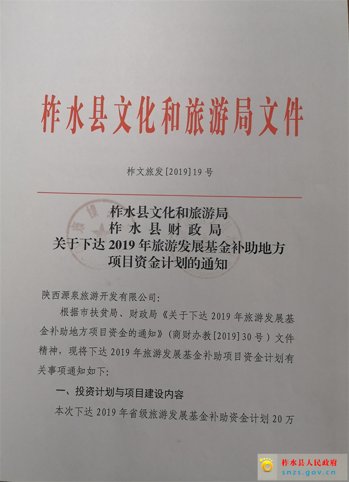 关于下达2019年旅游发展基金补助地方项目资金计划的通知(19号)
