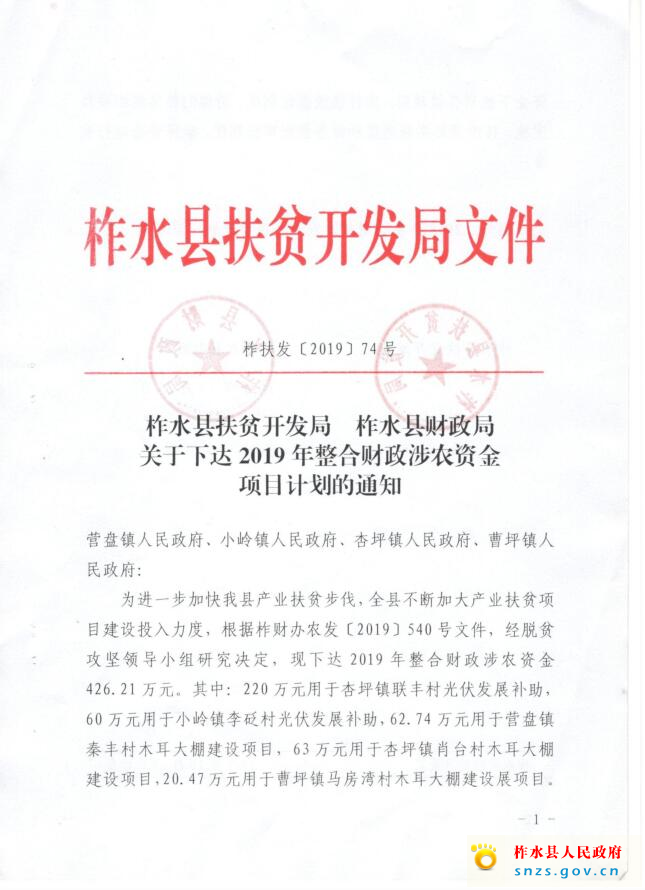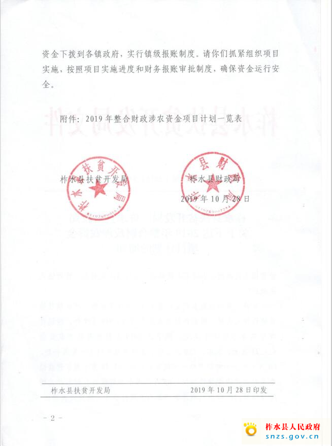 关于下达2019年整合财政涉农资金项目计划的通知