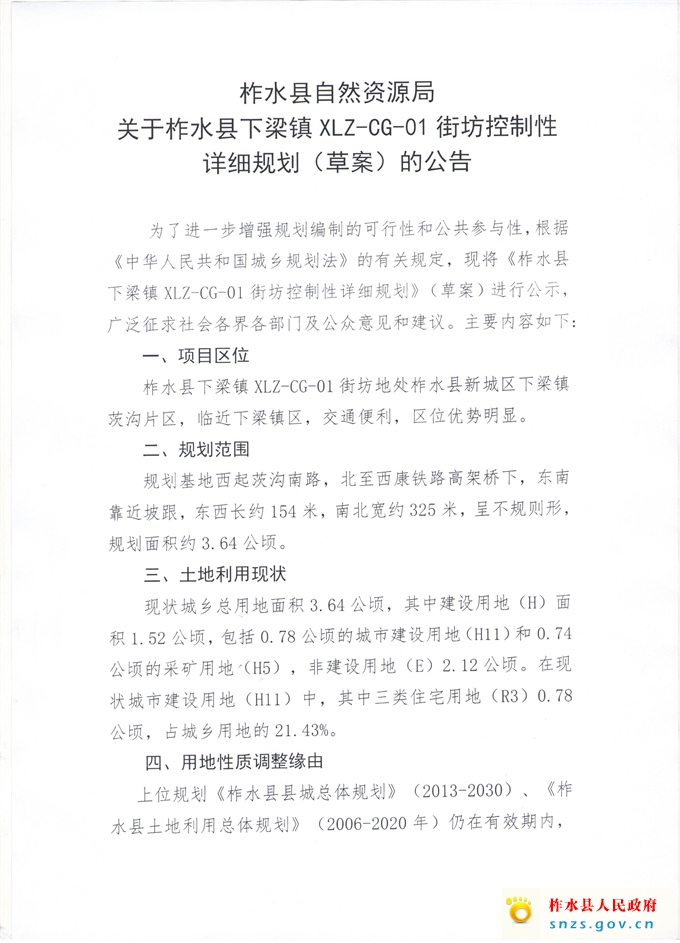 关于柞水县下梁镇XLZ--CG--01街坊控制性详细规划(草案)的公告