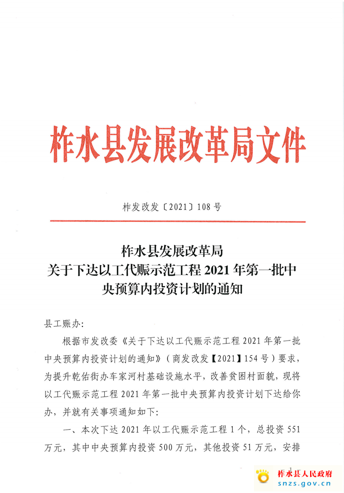 关于下达以工代赈示范工程2021年第一批中央预算内投资计划的通知