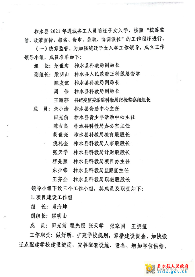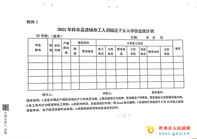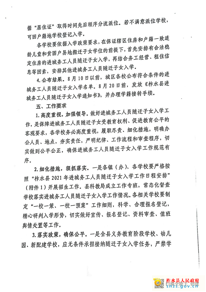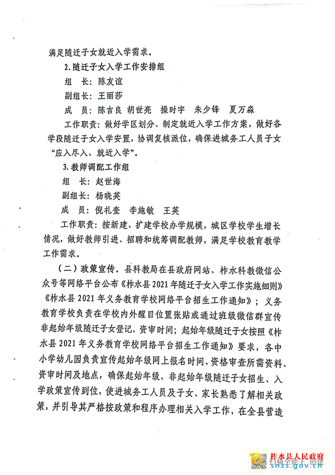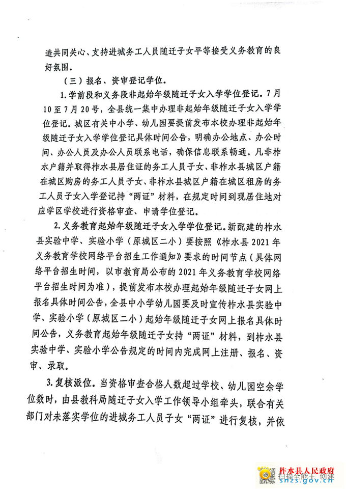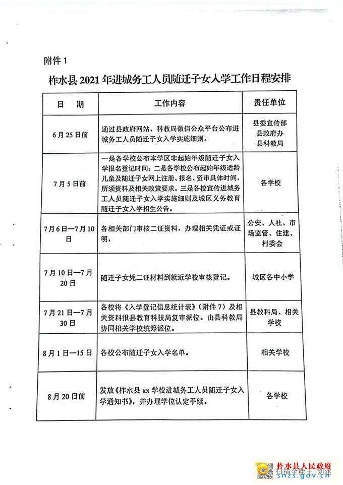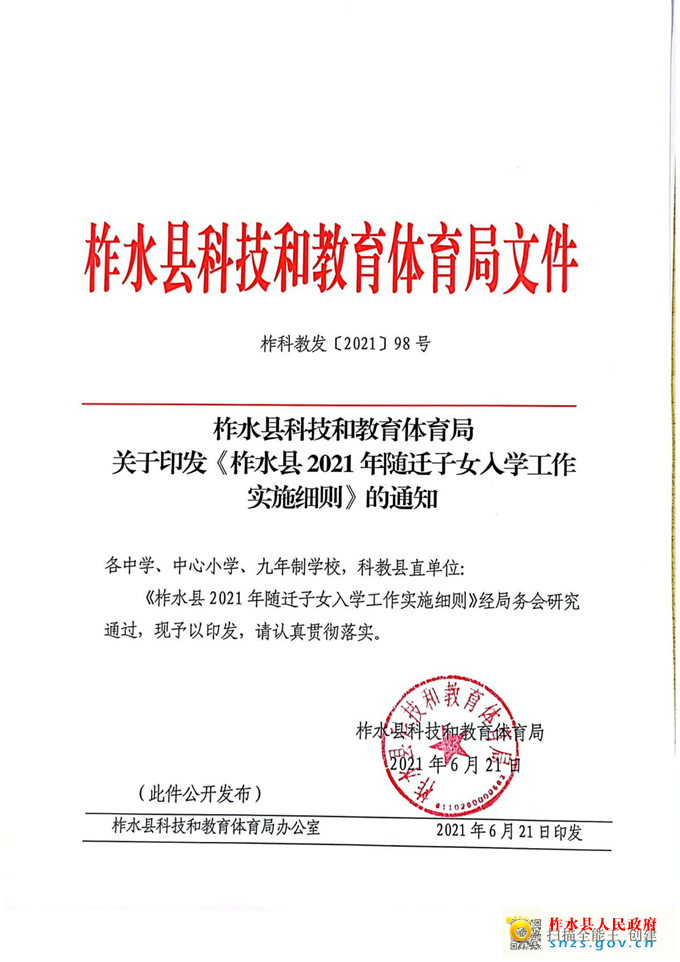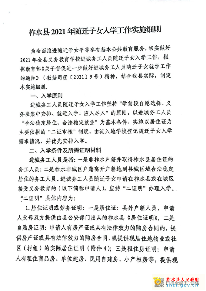 关于印发《柞水县2021年随迁子女入学工作实施细则》的通知