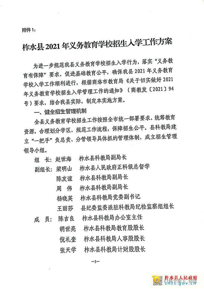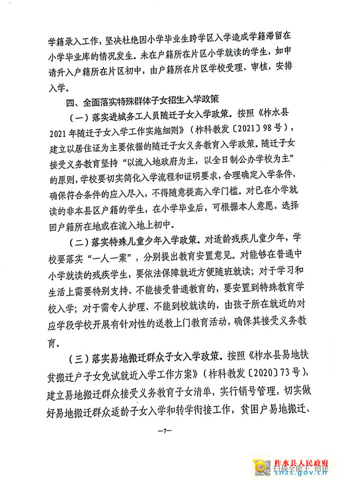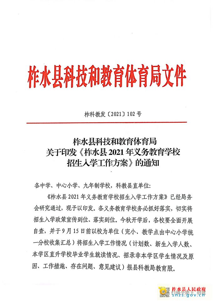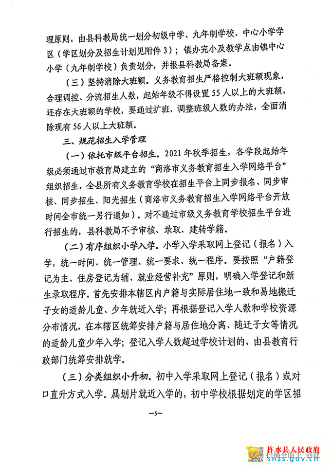 关于印发《柞水县2021年义务教育学校招生入学工作方案》的通知