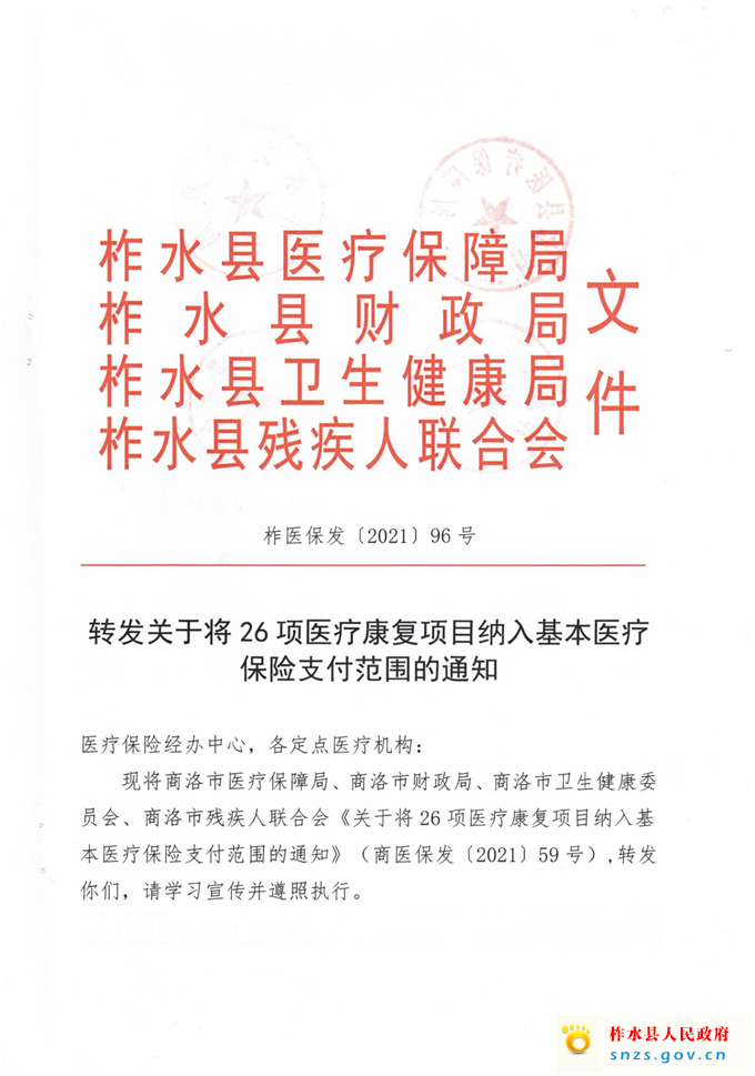 转发关于将26项医疗康复项目纳入基本医疗保险支付范围的通知